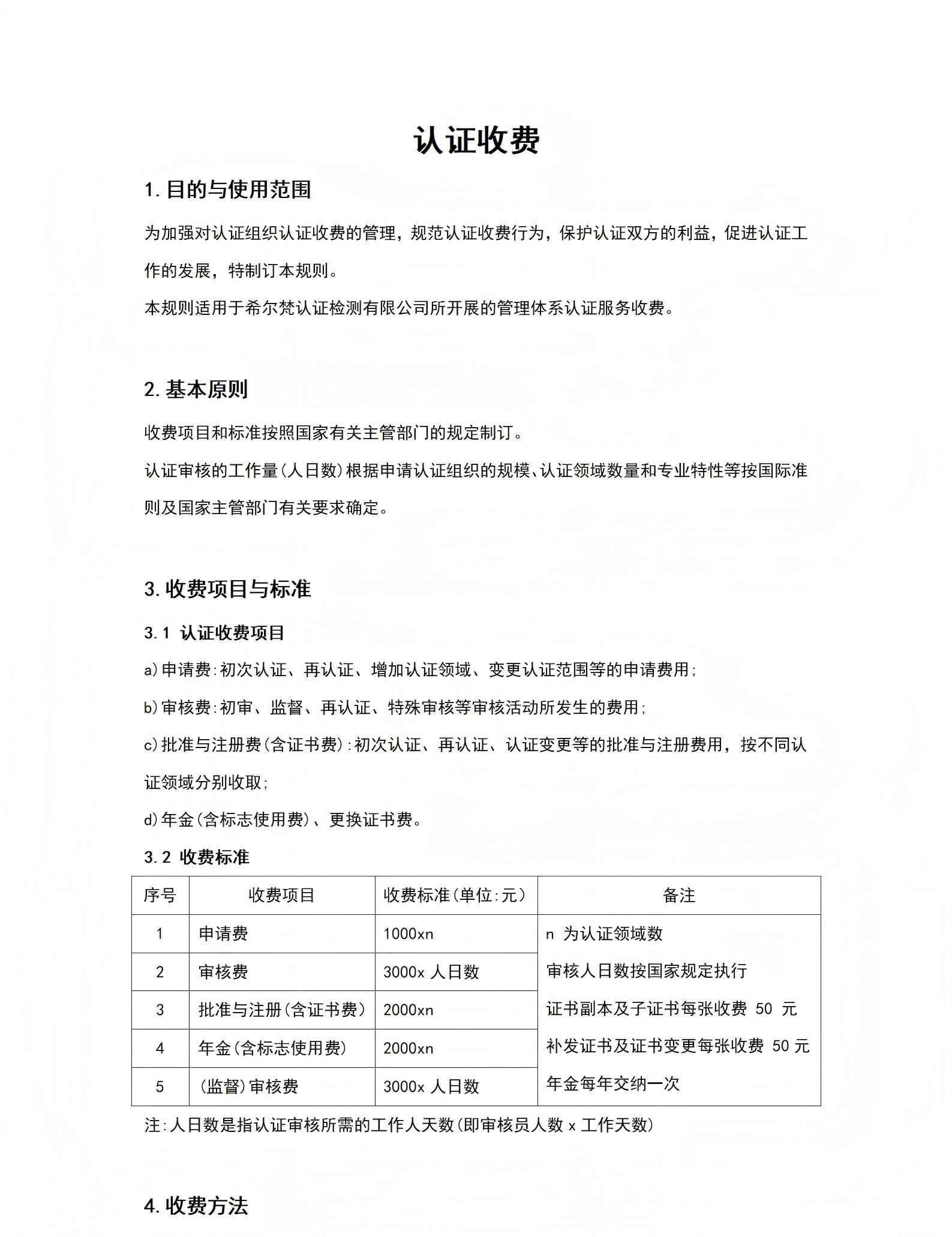 收费标准
