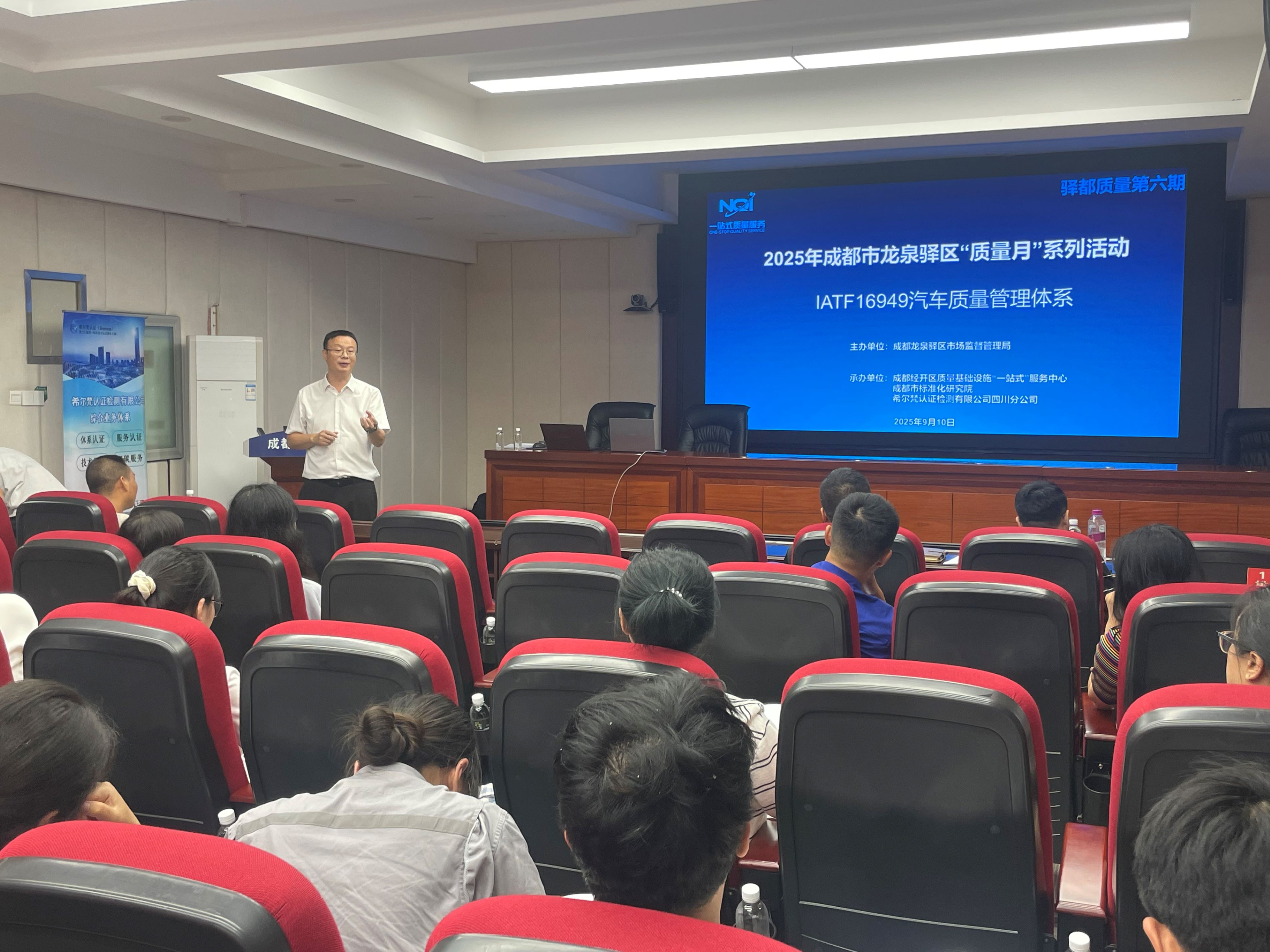 为贯彻落实2025年全国“质量月”活动部署要求,深入推进市场监管领域蹲点服务“立园满园”行动,9月10日,成都市龙泉驿区市场监督管理局围绕“加强全面质量管理促进质量强国建设”主题,组织开展IATF16949汽车质量管理体系专项培训(“驿都质量”第6期),切实为龙泉驿区汽车企业质量提升赋能。