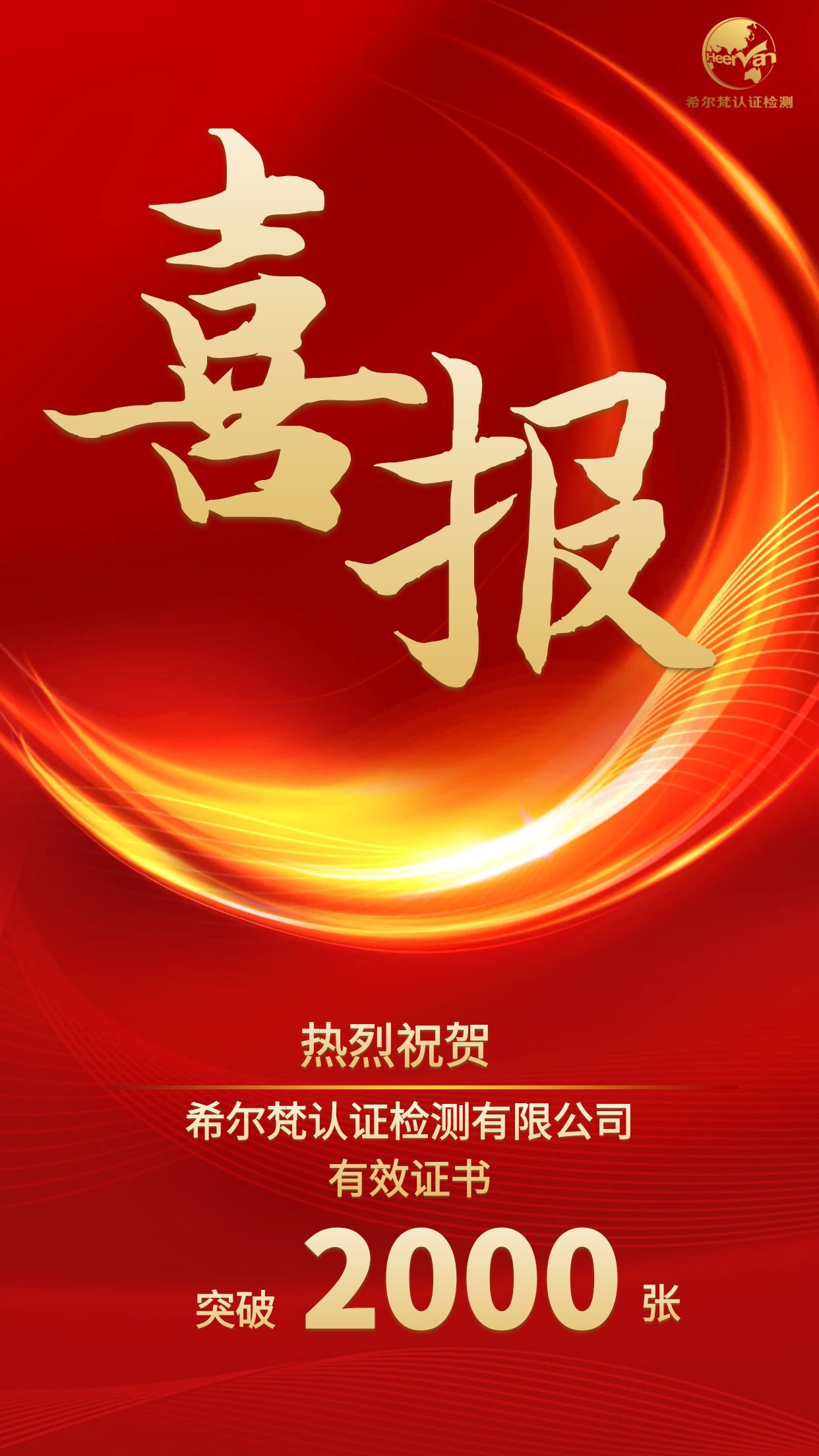 喜讯:希尔梵有效证书量成功突破 2000 !